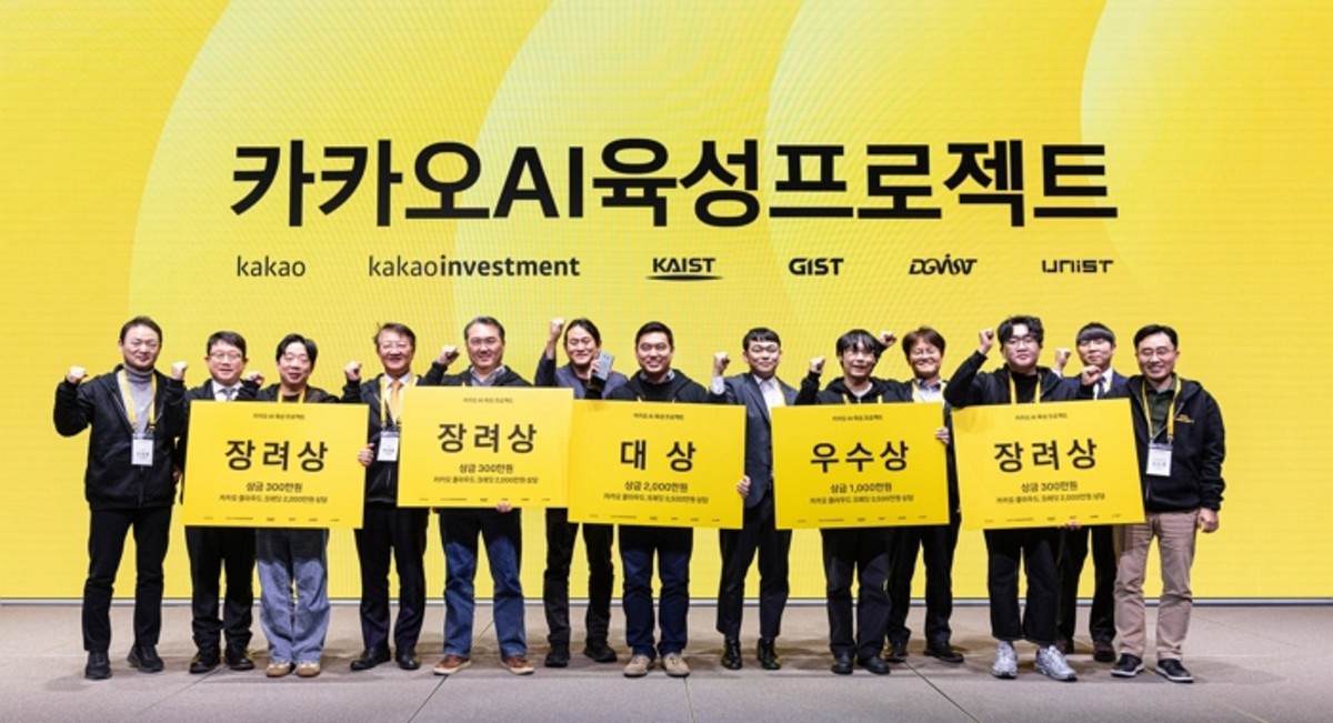 정신아 의장이 이끄는 카카오그룹은 지난 22일 경기도 용인시 카카오 AI캠퍼스에서 '4대 과학기술원 X 카카오 AI 육성 프로젝트' 결선 발표회와 시상식을 진행했습니다. 이 프로젝트는 카카오그룹이 작년 9월 발표한 500억 원 규모의 지역 AI 생태계 조성 계획을 실현하는 첫 번째 사례로 주목받고 있습니다.