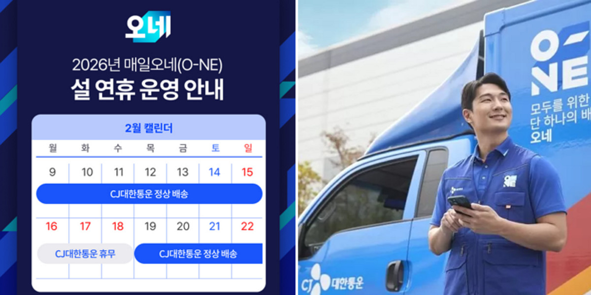 CJ대한통운은 매일오네 서비스를 통해 오는 2월 15일 일요일까지 설 선물을 비롯한 모든 택배 상품의 정상 배송을 실시합니다.