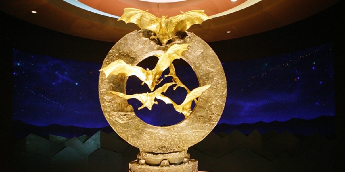 황금박쥐상은 가로 1.5m, 높이 2.1m 크기의 은으로 만든 원형 구조물 위에 순금으로 제작된 6마리 박쥐가 날개를 펼치며 비상하는 형태로 디자인된 작품입니다. 함평군은 증가한 국민적 관심도를 감안해 보안 체계를 강화하고 함평엑스포공원 근처 생태전시관에서 상설 전시를 운영하고 있습니다.