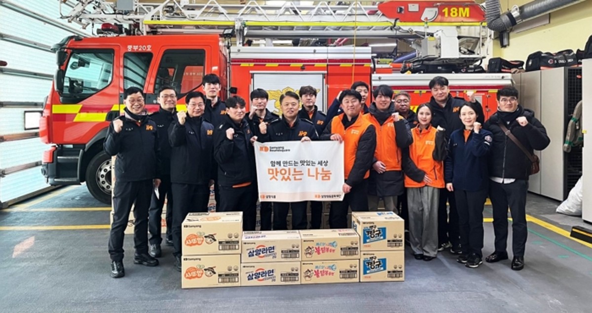 삼양라운드스퀘어와 삼양식품은 또 중구 소재 서울특별시 소방재난본부 및 비영리단체 119사랑나눔회의 추천을 받아 중부소방서, 서울소방학교, 중랑소방서 등을 대상으로도 기부를 진행했습니다.