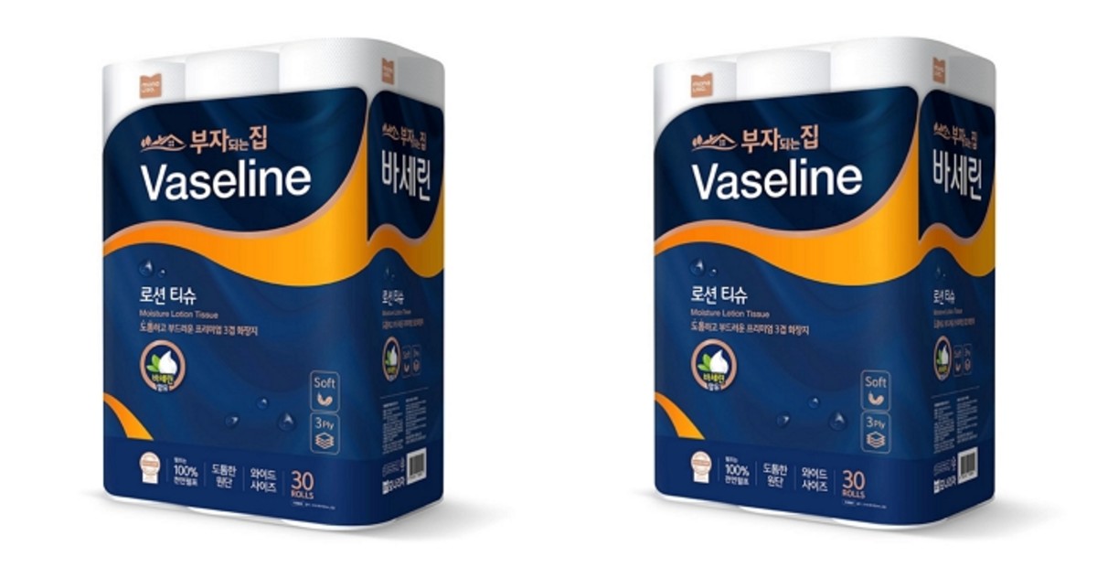 모나리자가 새롭게 출시한 '부자되는집 바세린 로션 화장지'는 국내 화장지 업계에서 처음으로 바세린 성분을 적용한 혁신적인 제품입니다.