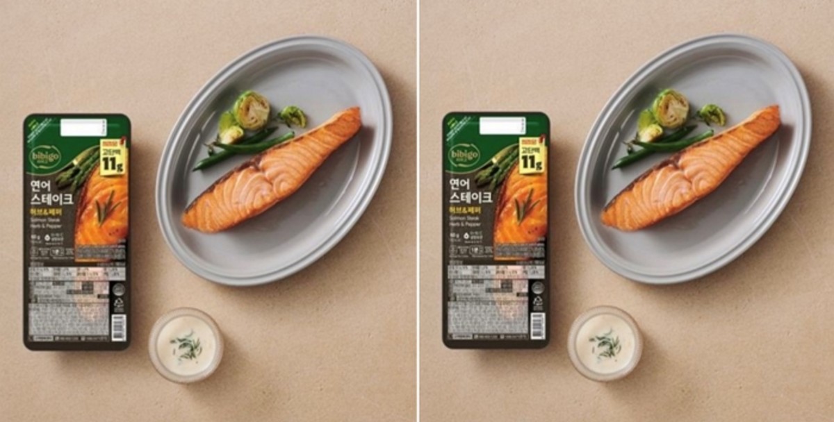 지난달 선보인 '비비고 연어 스테이크'는 엑스트라 버진 올리브 오일과 레몬즙으로 연어 고유의 담백한 맛을 살리면서 허브와 흑후추를 더해 비린맛을 낮춘 제품입니다. 과열증기 오븐으로 구워 촉촉한 식감을 구현했으며, 큰 뼈부터 잔가시까지 수작업으로 꼼꼼하게 제거한 순살 형태로 출시돼 먹는 과정의 부담도 줄였습니다. 트레이에 담겨있어 별도의 손질이나 조리 과정 없이 전자레인지에 약 1분 데우기만 하면 간편하게 완성할 수 있습니다.