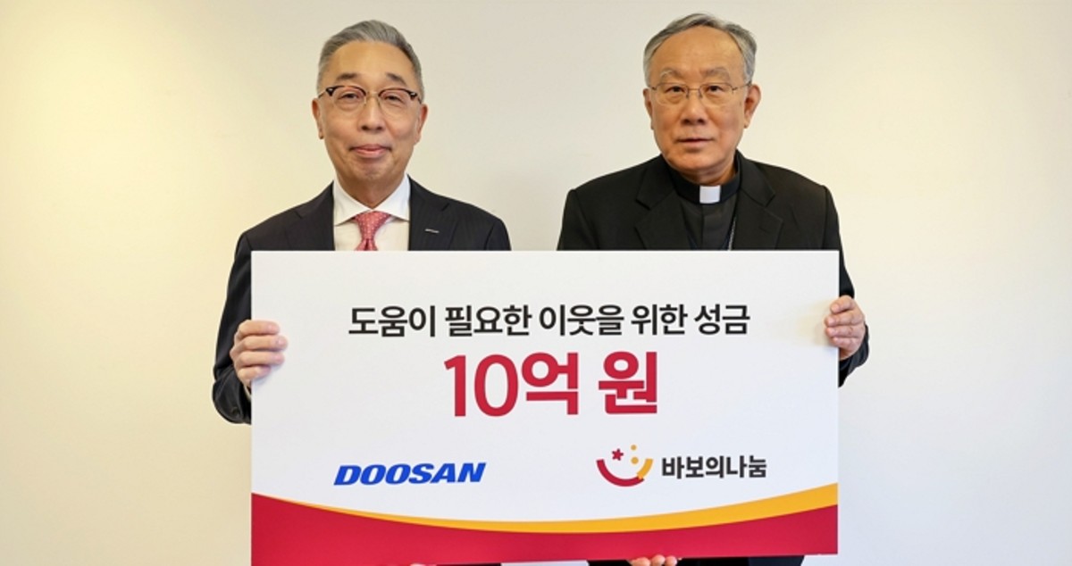 4일 두산그룹이 발표한 내용에 따르면, 지난 3일 서울 명동성당에서 성금 전달식이 개최됐습니다.