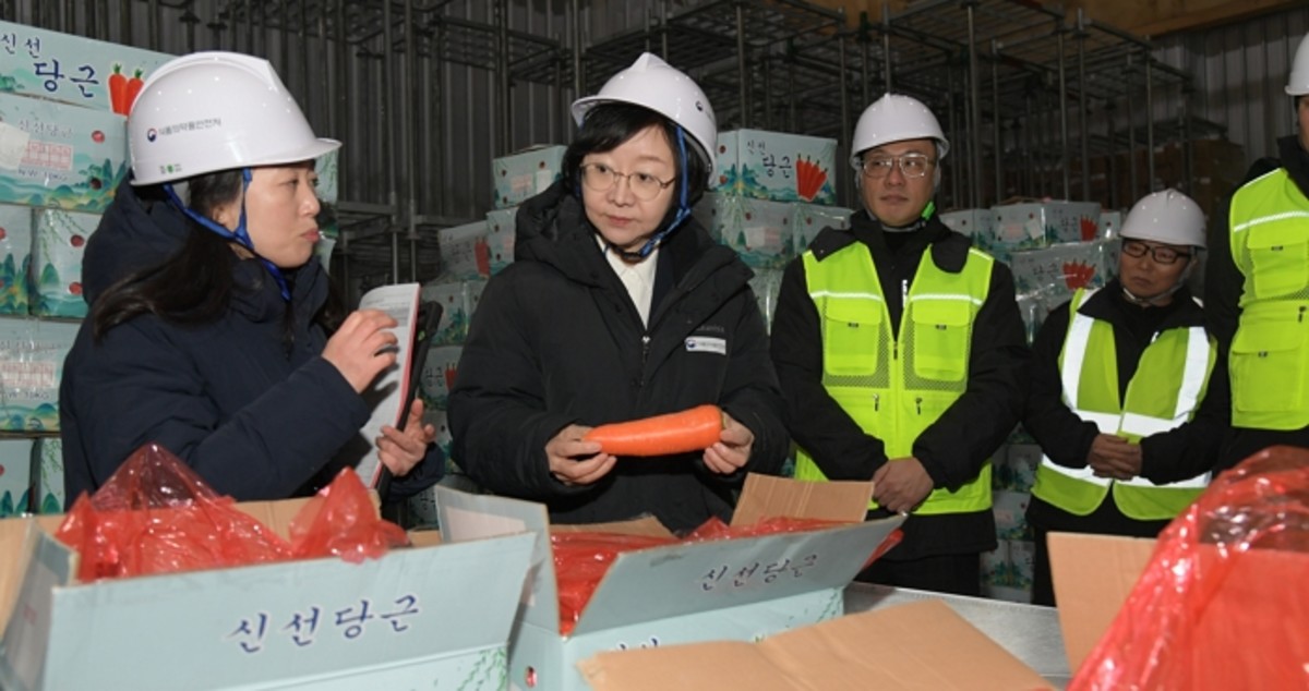 오유경 처장은 현장에서 대파, 당근 등 수입농산물의 검체수거와 관능검사 과정을 직접 살펴봤습니다.
