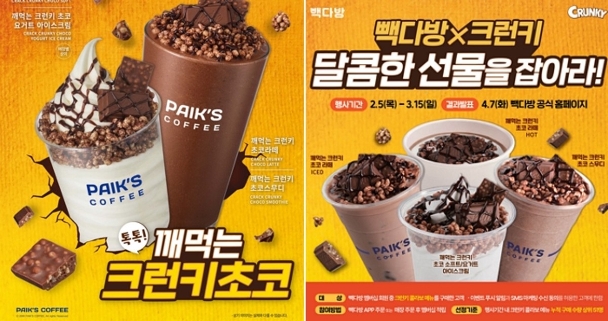 빽다방 관계자는 "발렌타인데이 시즌에 맞춰 크런키 초콜릿의 매력을 담아 빽다방만의 방식으로 재해석한 신메뉴를 선보이게 됐다"며 "앞으로도 시즌과 트렌드에 맞춘 메뉴를 통해 색다른 맛과 즐거움을 전할 수 있도록 노력하겠다"라고 말했습니다.
