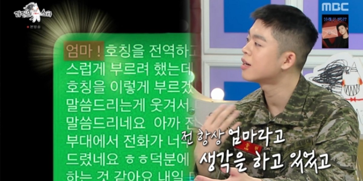 그리는 ""전역 전날 전화로 엄마라고 말을 하려고 했는데, 통화가 안 되어서 문자로 '엄마'라고 부르면서 '항상 엄마라고 생각하고 있었다'고 메시지를 남겼다. 그리고 답장을 받았는데, 굉장히 좋아하셨다"라며 훈훈한 에피소드를 공개해 시청자들의 마음을 따뜻하게 했습니다.