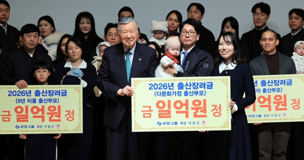 지난 5일 이중근 부영그룹 회장은 서울 중구 부영태평빌딩에서 개최된 2026년 시무식에서 출산장려금 지급 행사를 진행했습니다.