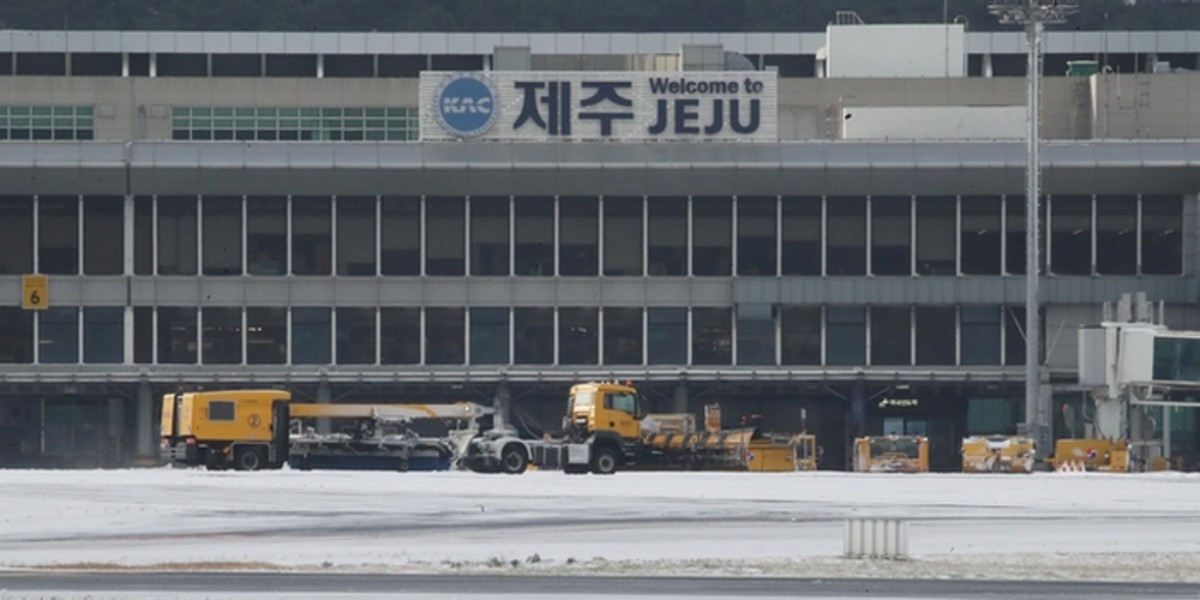 인사이트제주국제공항 활주로에서 제설작업이 이뤄지고 있다. / 뉴스1