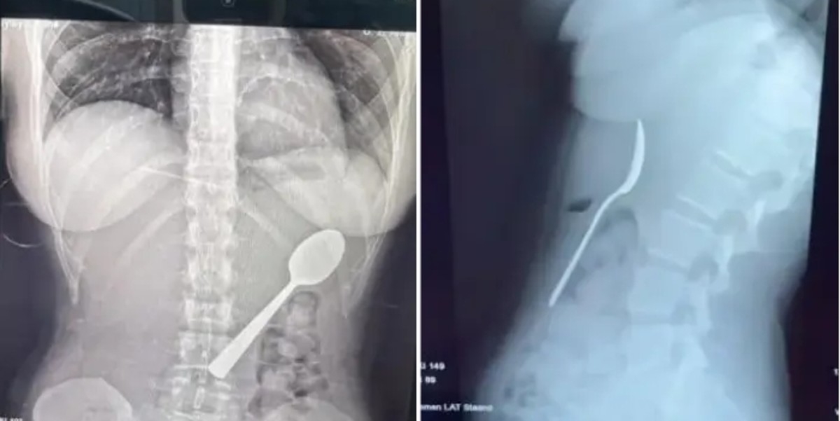 하지만 저녁 식사 후 상태가 악화되면서 그는 응급실을 찾을 수밖에 없었습니다. 병원에서 촬영한 엑스레이 사진에는 뱃속에 수직으로 세워진 채 걸려 있는 숟가락이 선명하게 나타났습니다. 의료진은 숟가락이 너무 커서 자연 배출이 불가능하다고 진단했습니다.