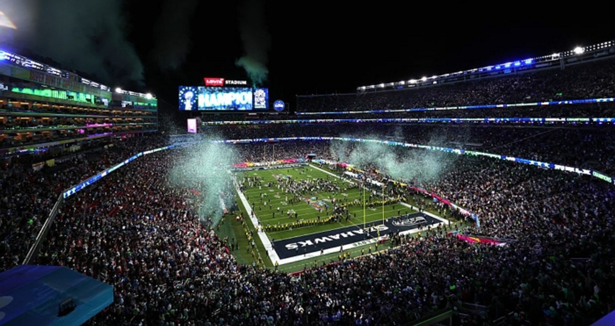 시애틀 시호크스가 뉴잉글랜드 패트리어츠를 꺾고 슈퍼볼 LX에서 우승한 후, 경기장에 축하 폭죽이 흩날리고 있다. / GettyimagesKorea
