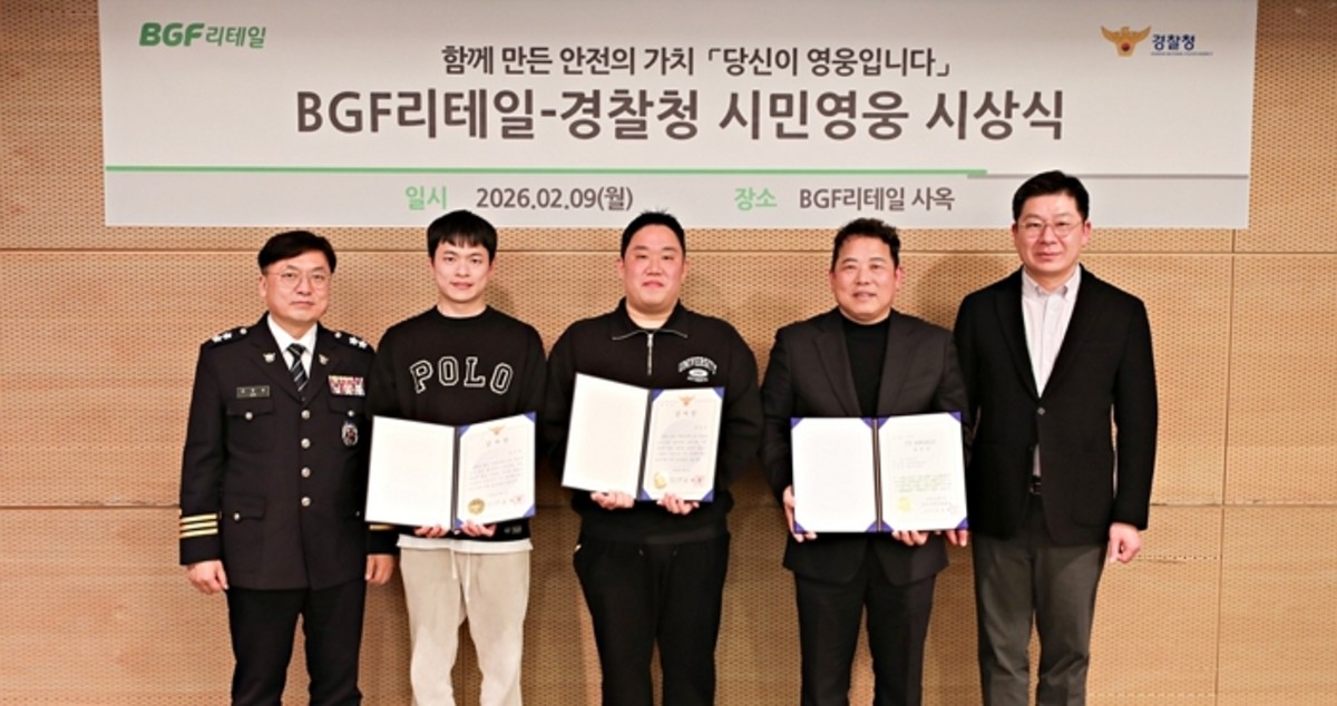 BGF리테일이 경찰청과 공동으로 시민의 생명을 구한 영웅들을 격려하는 '2026년 시민영웅 시상식'을 개최했습니다.