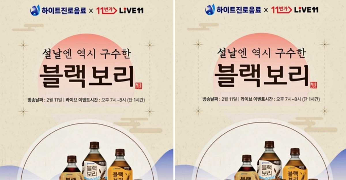 하이트진로음료가 설 명절을 맞아 11번가와 협력하여 '블랙보리' 라이브 커머스를 실시한다고 10일 발표했습니다.