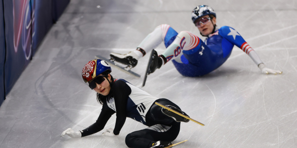 밀라노 코티나 2026 동계 올림픽 4일차 쇼트트랙 스피드 스케이팅 혼성 팀 릴레이 준결승에서 미국의 커린 스토더드가 김길리와 충돌했다 / GettyimagesKorea