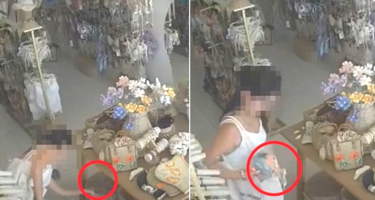 태국 푸껫의 한 의류 매장에서 한국인으로 추정되는 여성들이 수영복을 훔치고 있는 모습이 매장 CCTV에 포착됐다. / 더 타이거