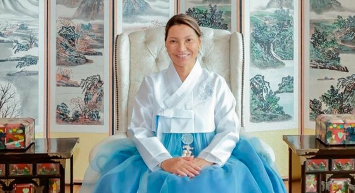 공개된 사진에는 한복을 입고 의자에 앉은 다시우바 여사의 모습과 함께 병풍, 자개 공예품, 다식 등 한국 전통 물품들이 함께 담겨 있습니다.