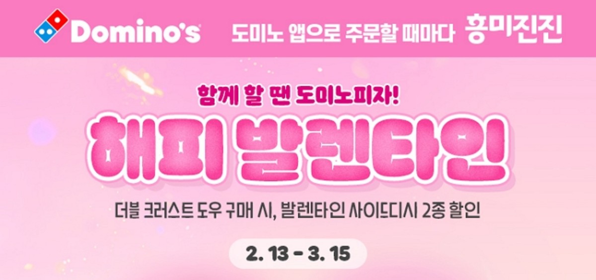 글로벌 피자 브랜드 도미노피자가 발렌타인데이를 맞아 사이드디시 2종 50% 할인 프로모션을 진행합니다.