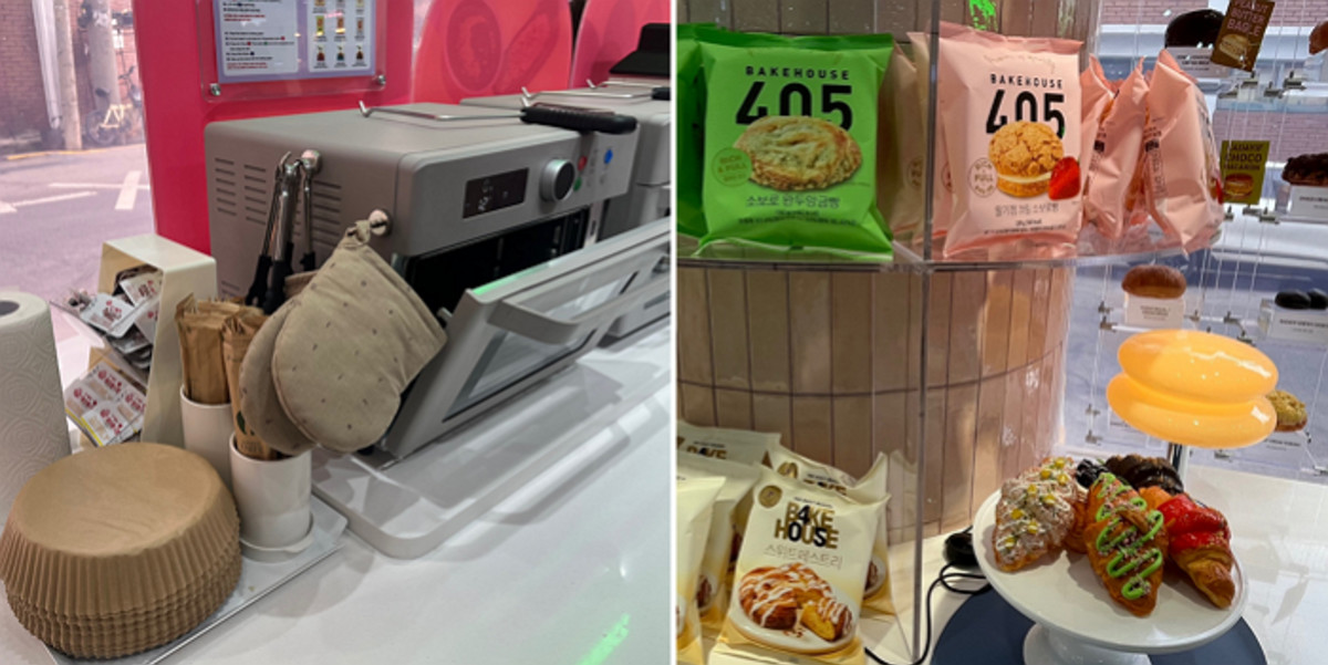 이곳은 비치된 오븐형 에어후라이기, 휘핑크림 디스펜서, 초코 소스·메이플시럽 등을 통해 고객이 직접 자신의 기호에 따라 디저트를 커스텀할 수 있는 공간입니다.