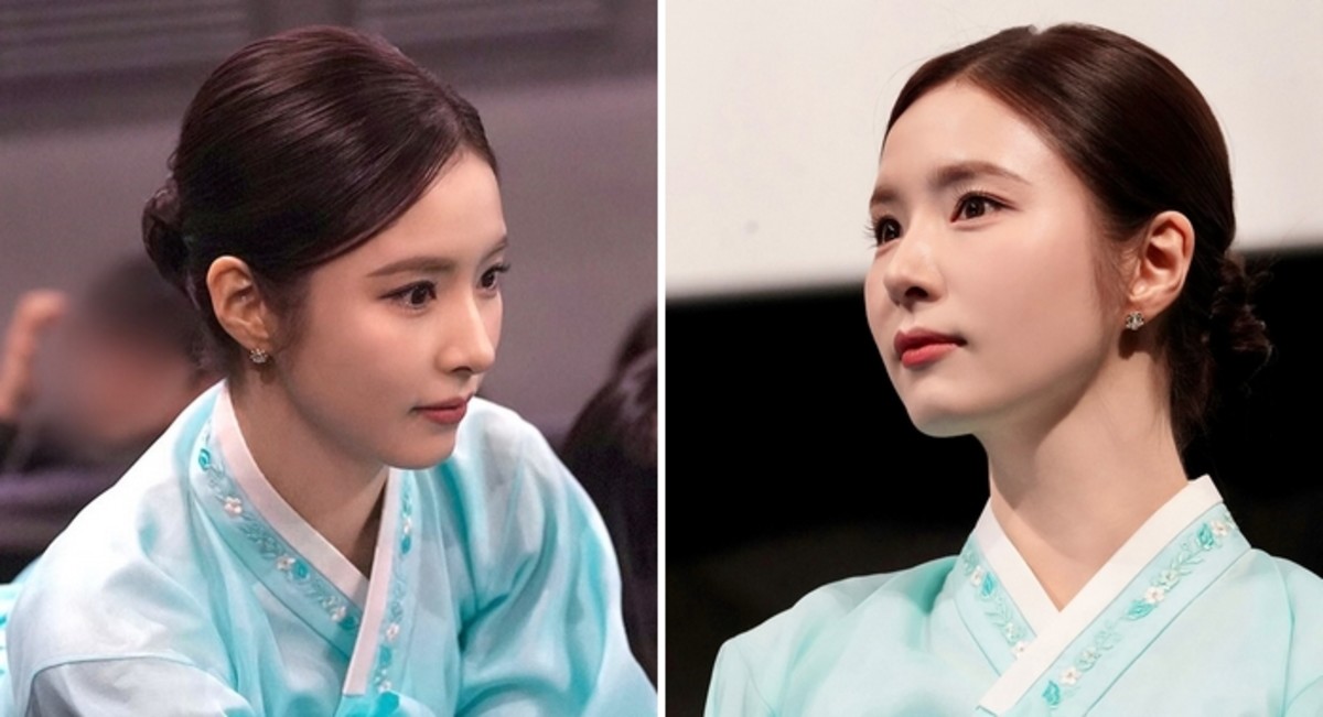 신세경이 착용한 한복은 자수 장식이 포인트인 깃 부분과 매듭 디테일이 세련된 느낌을 연출했으며, 작은 사이즈의 귀걸이를 함께 매치해 우아한 분위기를 완성했습니다.