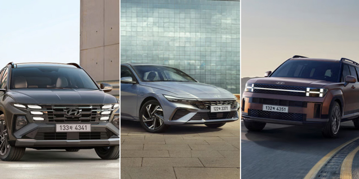 (왼쪽부터) 투싼 하이브리드, 아반떼 하이브리드, 싼타페 하이브리드 / 현대차