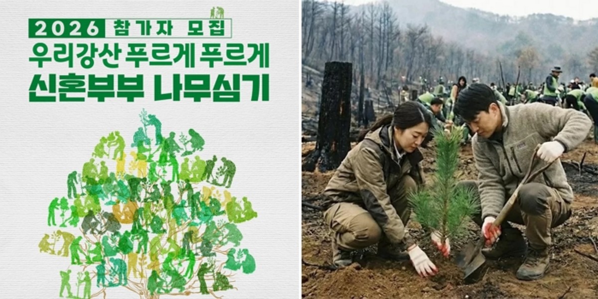 유한킴벌리가 오는 3월 28일 경상북도 안동시 산불피해지역에서 개최되는 '우리강산 푸르게 푸르게 2026 신혼부부 나무심기' 행사 참가자 100쌍을 모집한다고 밝혔습니다.