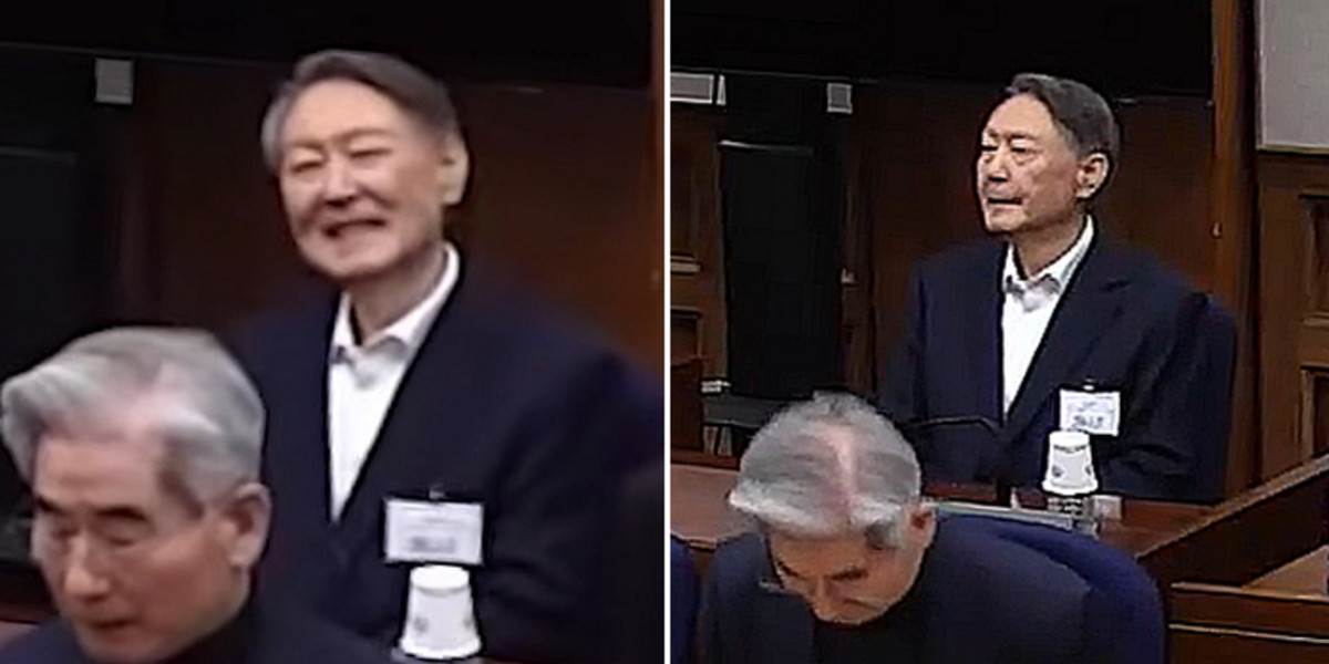 재판부 퇴정 후 방청석 지지자들이 "대통령님 힘내세요", "윤 어게인!"을 외치자 다시 한 번 옅은 미소를 지어 보이기도 했습니다.