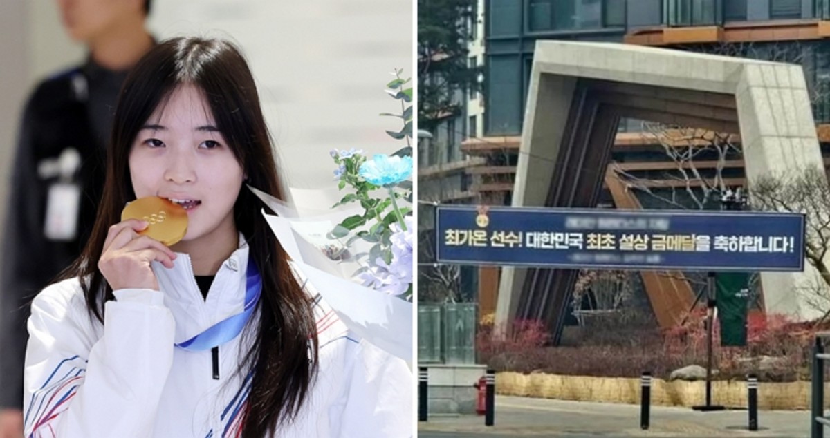 스노보드 여자 하프파이프에서 금메달을 획득한 최가온(18) 선수를 축하하는 현수막이 악성 민원으로 인해 철거됐다는 온라인 주장이 허위 정보로 밝혀졌습니다.