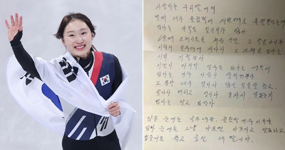 쇼트트랙 스타 최민정(28)이 2026 밀라노·코르티나담페초 동계올림픽에서 은메달을 획득한 가운데, 어머니가 건넨 손편지가 화제를 모으고 있습니다.