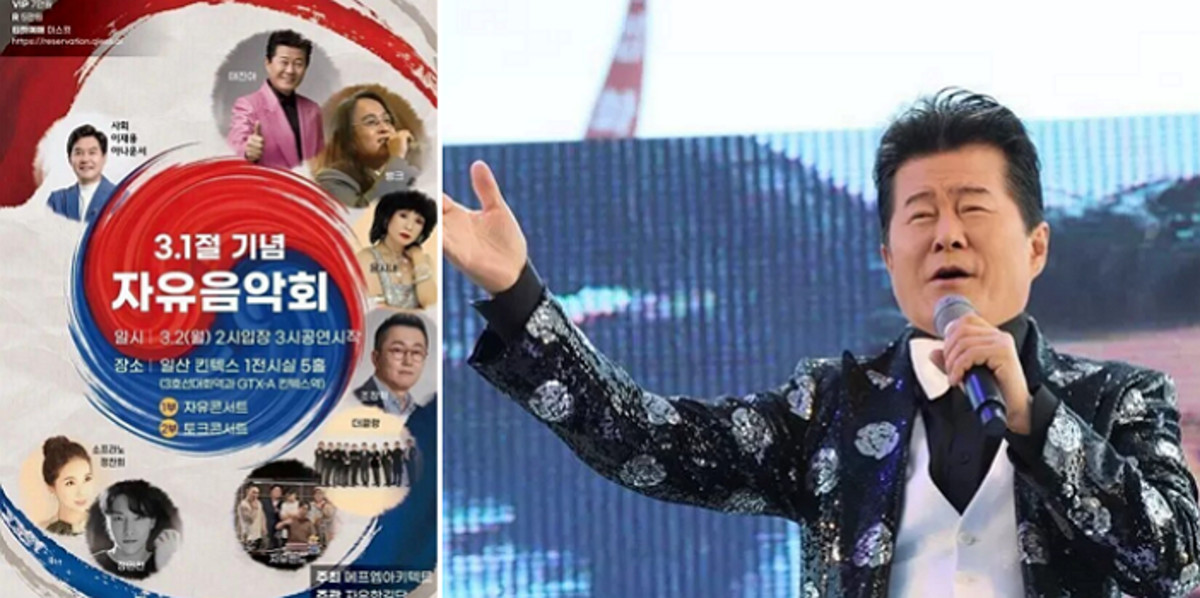 전한길의 유튜브 채널 '전한길 뉴스'는 이날 오는 3월 2일 고양시 킨텍스에서 개최될 '3.1절 기념 자유음악회'를 알리면서 태진아를 포함한 출연진의 사진이 담긴 홍보 포스터를 공개했습니다.