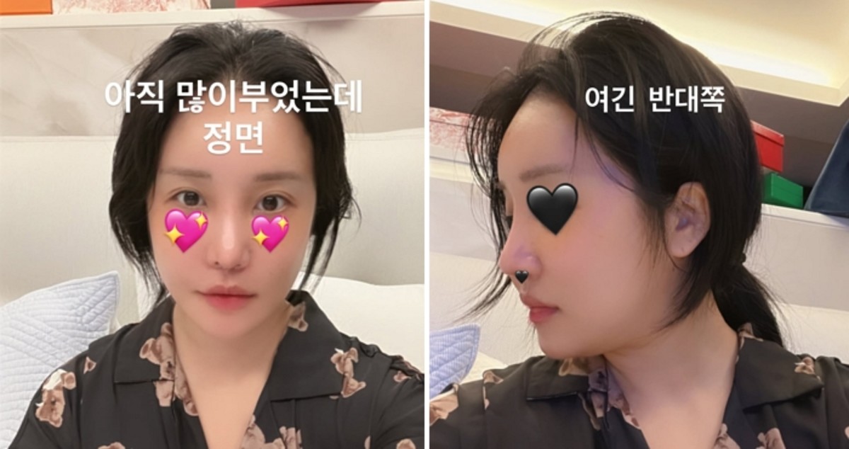 그는 측면과 정면 사진을 연달아 게시하면서 "아직 많이 부었는데 정면", "여긴 반대쪽"이라는 설명을 추가해 수술 후 회복 과정을 생생하게 전했습니다.