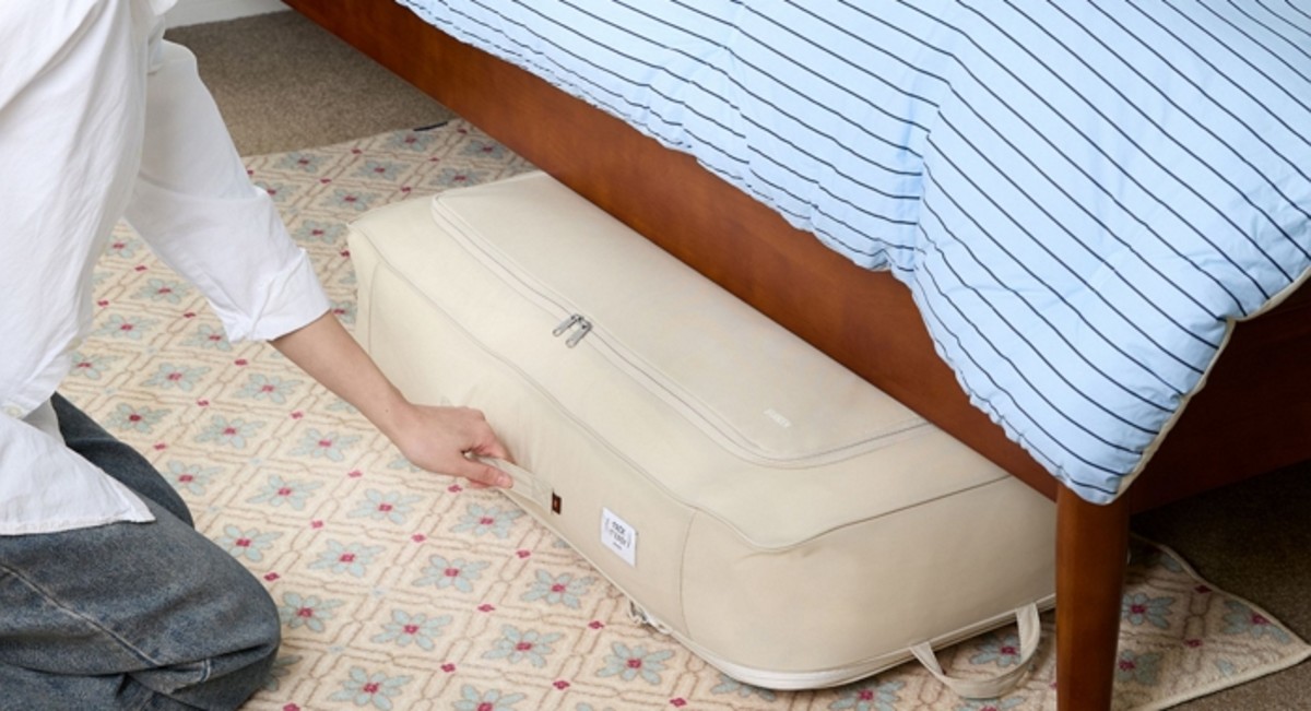 브랜든의 신제품 이불 압축 파우치 와이드는 가로가 길고 높이가 낮은 납작한 형태로, 침대 밑이나 장롱 위 등 기존 압축 파우치로 활용하기 어려웠던 틈새 공간 활용도를 높인 것이 특징입니다.