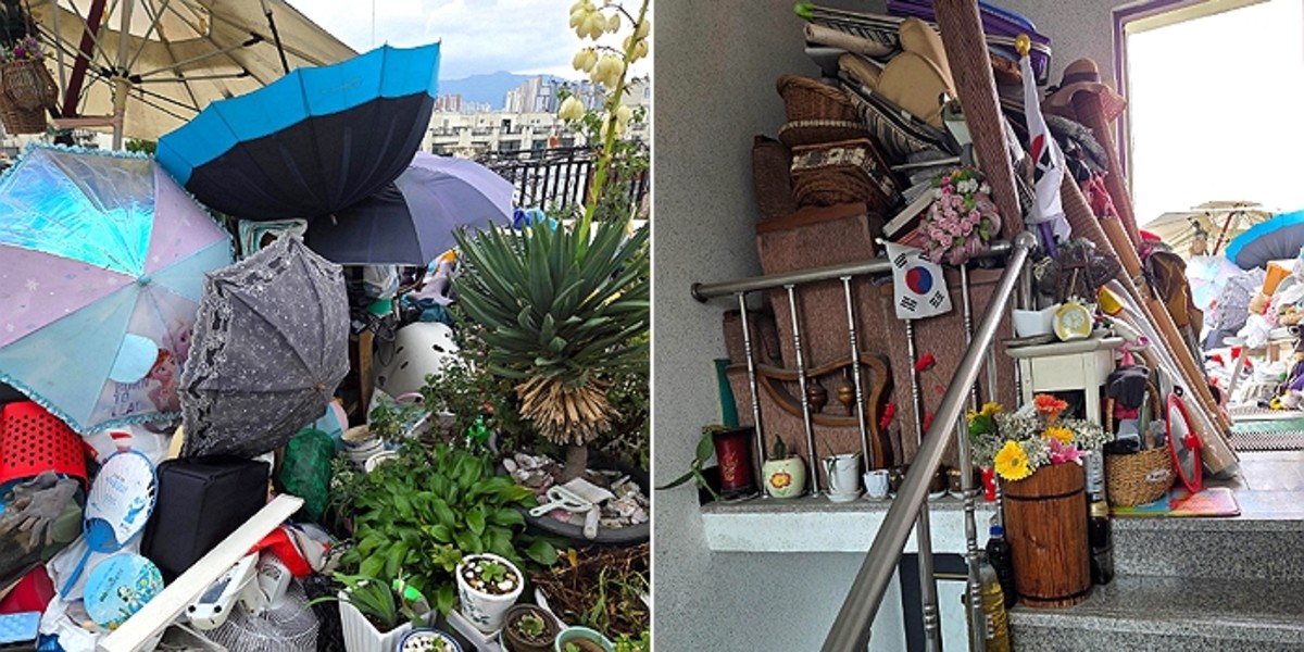 공개된 사진 속 옥상에는 수십 개의 화분과 각종 잡동사니가 무질서하게 쌓여 있었습니다. 우산과 양산, 파라솔은 펼쳐진 채 방치돼 있었고, 음식물이 담긴 냄비까지 그대로 놓여 있어 눈살을 찌푸리게 했습니다.