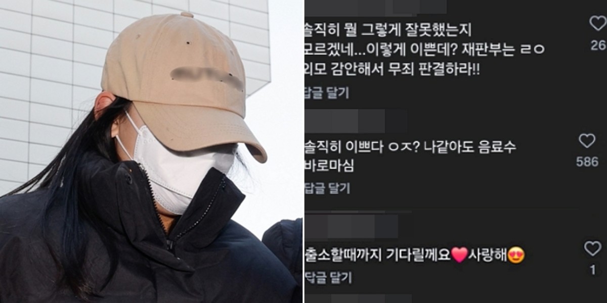 댓글란에는 더욱 심각한 반응들이 이어졌습니다. "솔직히 이쁘다. 나 같아도 바로 음료수 마신다", "정말 미인이다. 눈빛이 날카로우면서 아름답다"와 같은 외모 찬양부터 "재판부는 외모 감안해서 무죄 판결해라", "금방 나올 거다. 다 같이 모금 계좌 만들자"는 선처 요구까지 등장했습니다. 심지어 "솔직히 뭘 그렇게 잘못했는지 모르겠다"며 범죄 자체를 축소하려는 시도도 나타났습니다.