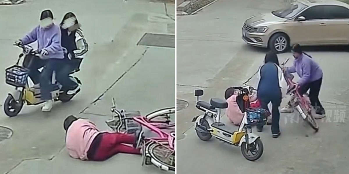 21일 펑망 신문, 펑파이 신문 등 현지언론에 따르면 지난해 3월 푸젠성 푸톈시의 한 도로에서 자전거를 타고 가다 넘어진 노인을 부축한 여중생들이 도리어 수천만원대의 손해배상소송에 휘말렸다 / 펑파이 신문