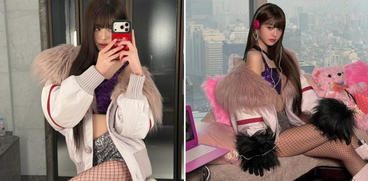 공개된 이미지에서 장원영은 보라색 스팽글 브라탑과 풍성한 퍼 안감의 화이트 점퍼를 조합해 화사한 룩을 선보였습니다. 여기에 과감한 망사 스타킹을 더해 기존의 청순한 이미지를 벗고 성숙하고 섹시한 매력을 발산했습니다.