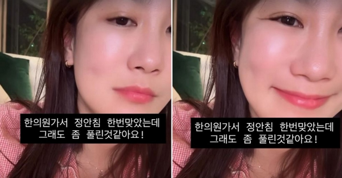 코미디언 김지민이 욕실에서 발생한 낙상 사고로 얼굴 부상을 입어 한의원 치료를 받고 있다고 밝혔습니다.