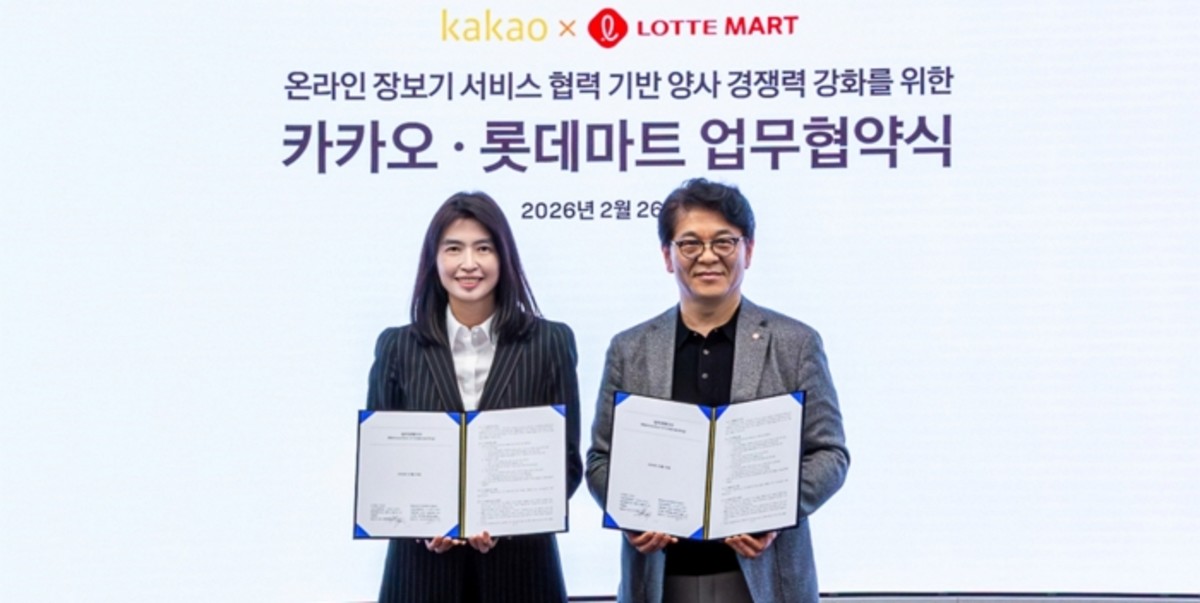 양사는 2월 26일 경기도 성남시 카카오 판교아지트에서 온라인 장보기 경쟁력 강화를 목표로 하는 업무협약을 맺었습니다. 협약식에는 차우철 롯데마트·슈퍼 대표와 정신아 카카오 대표이사가 직접 참석해 온라인 장보기 서비스의 운영 방안과 사업 추진 로드맵을 구체적으로 논의했습니다.