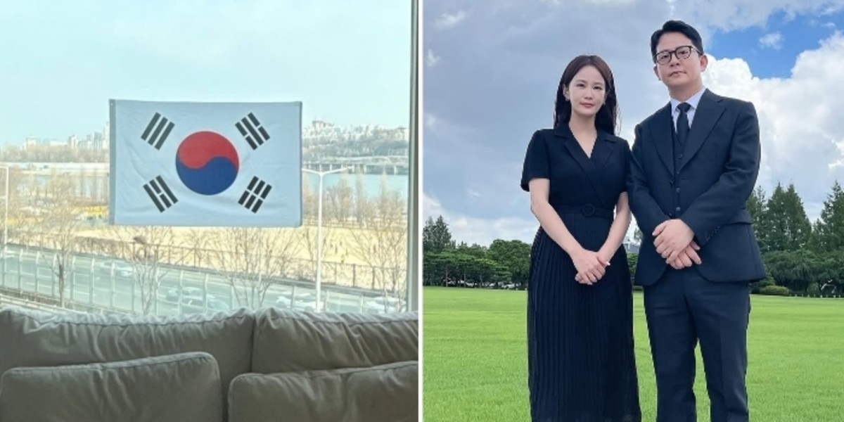 김지민은 "아침에 준호 오빠와 함께 두 손을 모아 묵념했습니다"라며 부부가 함께 태극기를 창문에 부착한 모습을 담은 사진을 함께 공개했습니다.