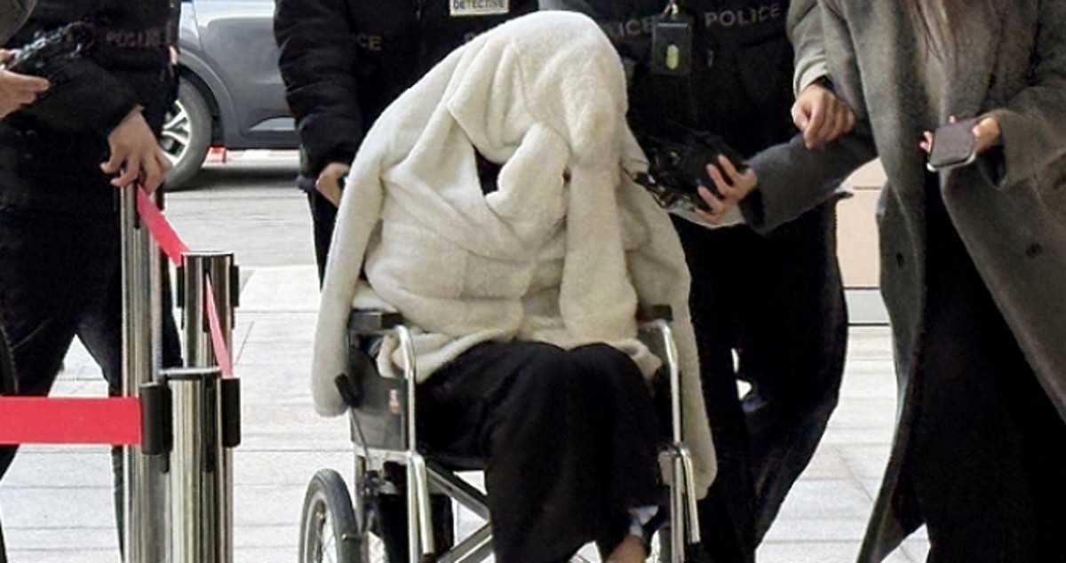 약물을 투약한 상태로 차량을 몰다 반포대교 난간을 뚫고 추락한 30대 여성 A씨가 27일 서울서부지법에서 열린 구속 전 피의자 심문(영장실질심사)에 휠체어를 타고 출석하고 있다.