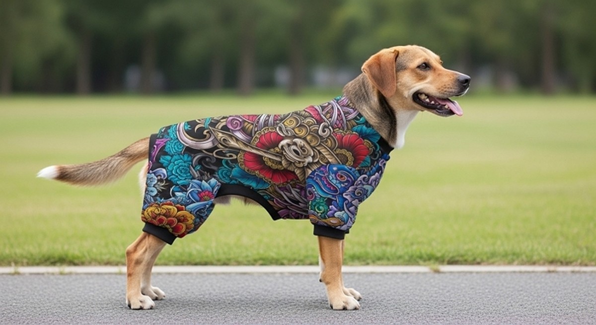 강아지들이 마치 전신 문신을 한 것처럼 보이는 독특한 의상이 반려견 애호가들 사이에서 큰 인기를 끌고 있습니다.