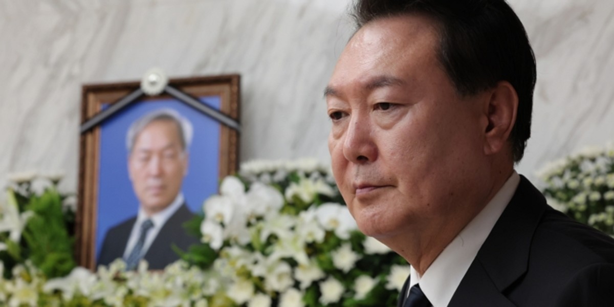 윤석열 전 대통령이 부친 고 윤기중 연세대 명예교수의 빈소를 지키고 있다. (대통령실 제공). 2023.8.15/뉴스1