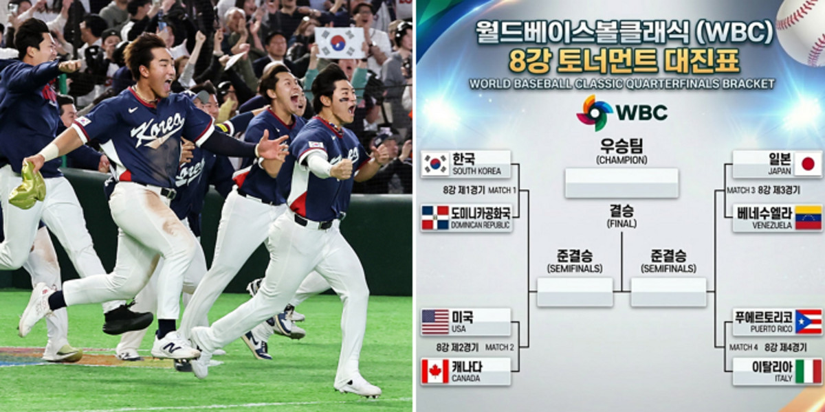 월드베이스볼클래식(WBC) 8강 토너먼트 대진표가 완성됐다. 한국 대표팀은 강력한 공격력을 자랑하는 도미니카공화국과 4강 진출을 놓고 격돌한다.