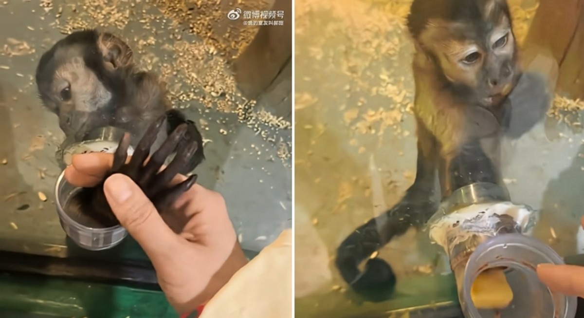 유리창에 있는 먹이 구멍을 통해 손을 맞대던 중, 관광객은 장난스럽게 "나도 사과 먹고 싶은데 하나 더 가져다줄 수 있어?"라고 말하자, 영리한 원숭이는 그의 요청을 이해한 듯 실제로 행동에 나섰다. 원숭이가 사람에게 사과를 건네는 '역 먹이주기'를 한 것이다.