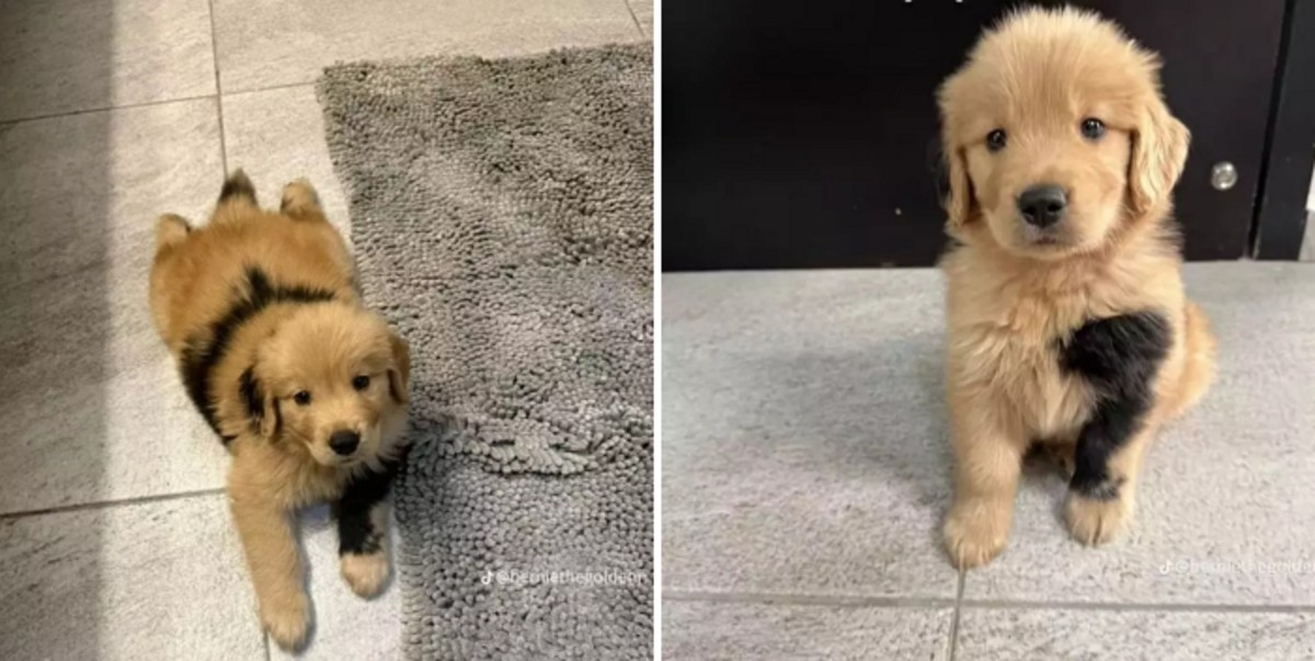 유전자 돌연변이로 몸 곳곳에 검은 반점이 생긴 골든 리트리버가 해외 누리꾼들의 관심을 끌고 있다. 잉크가 묻은 듯한 독특한 무늬를 가지고 있지만 다행히(?) 건강에는 문제가 없는 것으로 알려졌다.