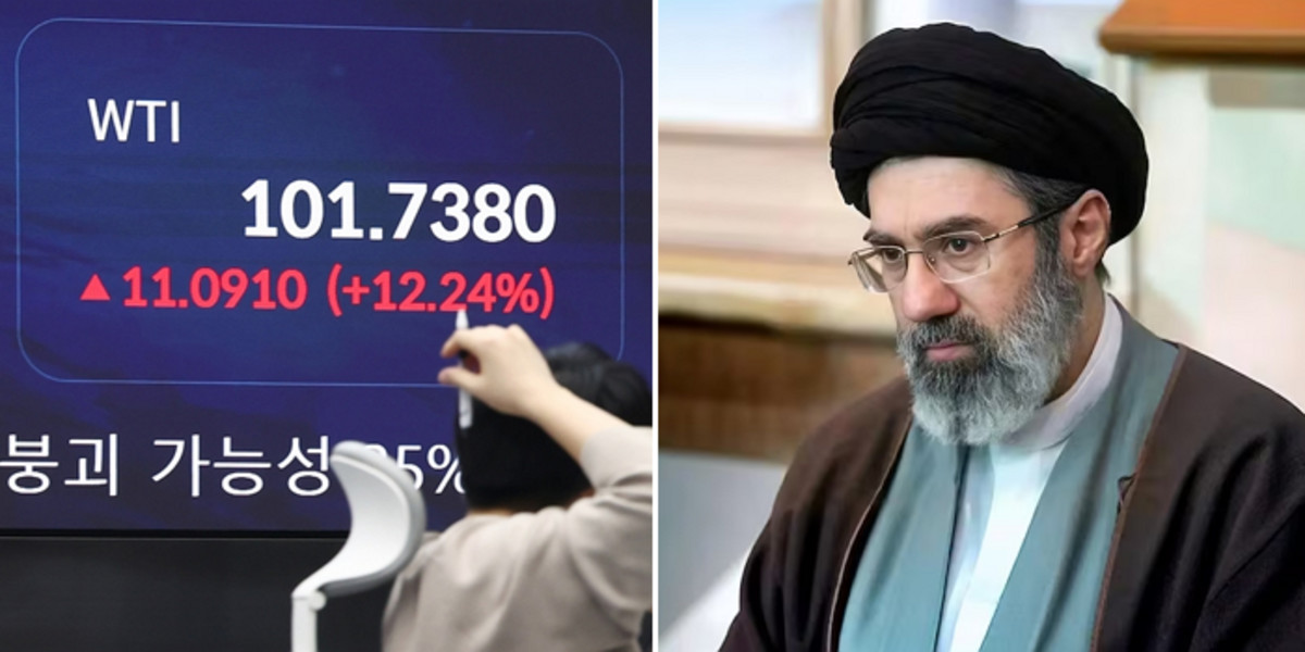 이란 새 최고지도자 모즈타바 하메네이가 강경 메시지를 발표하자 국제유가가 100달러를 돌파했다.