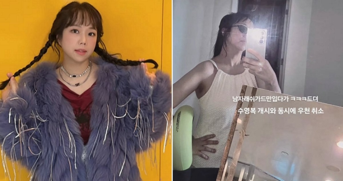 홍현희는 12일 자신의 SNS에 "남자 래쉬가드만 입다가 드디어 수영복 개시와 동시에 우천 취소"라는 글과 함께 사진을 올렸다.