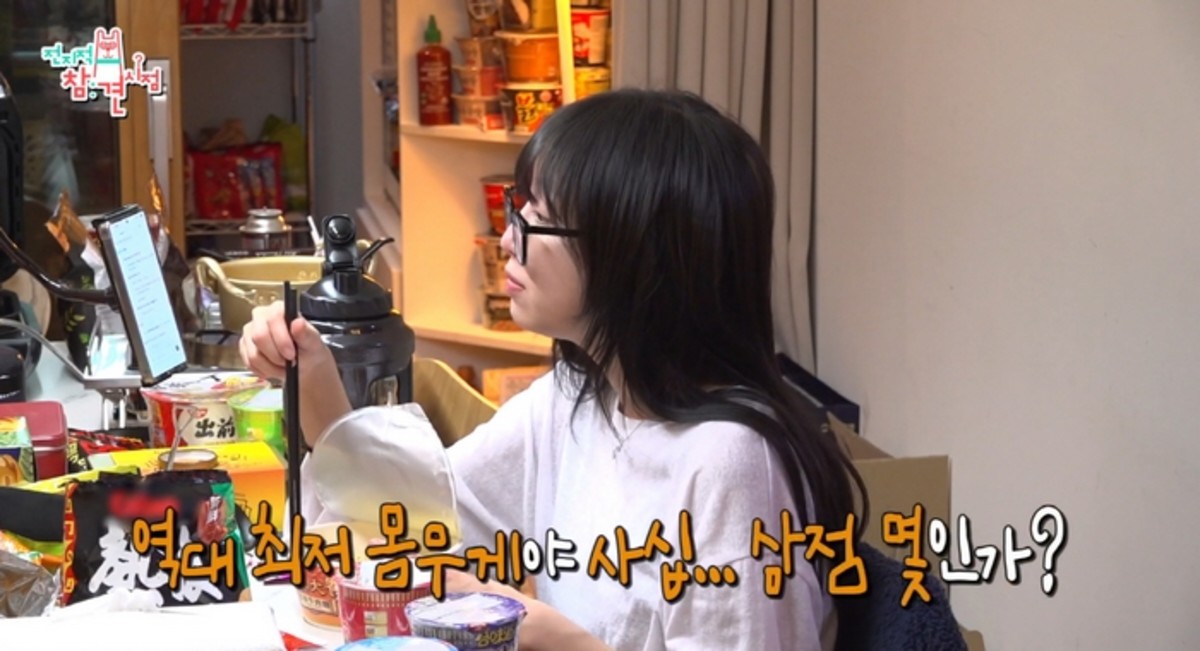 쯔양은 홍콩 컵라면과 과자를 섭취하고 15봉을 우린 1.7L 커피까지 거뜬히 마셨다. 전날에는 6시간 동안 샤부샤부를 먹으며 육수를 15번이나 추가했다고 밝혔다. 이처럼 막대한 음식 섭취량에도 불구하고 그의 체중은 오히려 역대 최저인 43kg을 기록했다는 사실이 알려져 참견인들을 놀라게 했다.