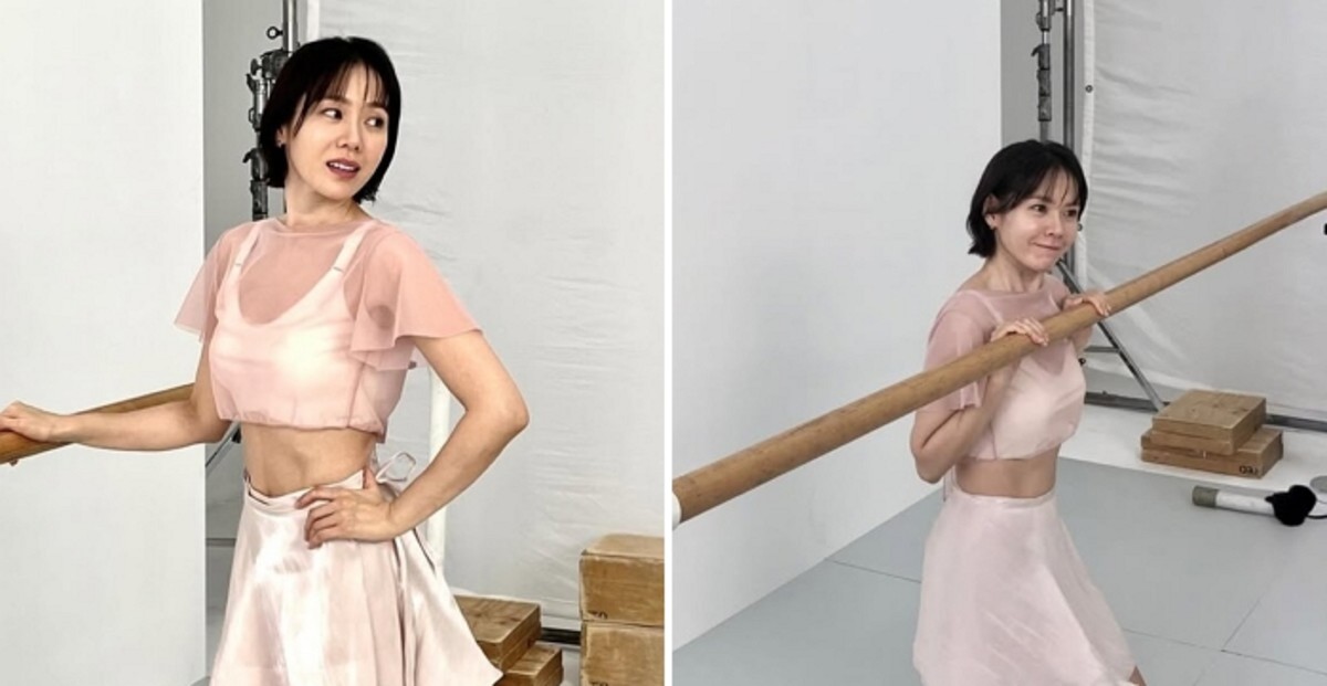 특히 주목을 끈 것은 연분홍 시스루 크롭톱과 플레어 미니스커트를 착용한 컷이었다. 손예진은 이 의상을 통해 슬림한 허리라인과 함께 탄탄하게 관리된 복근을 드러내며 청순한 외모와 대비되는 건강미를 과시했다.