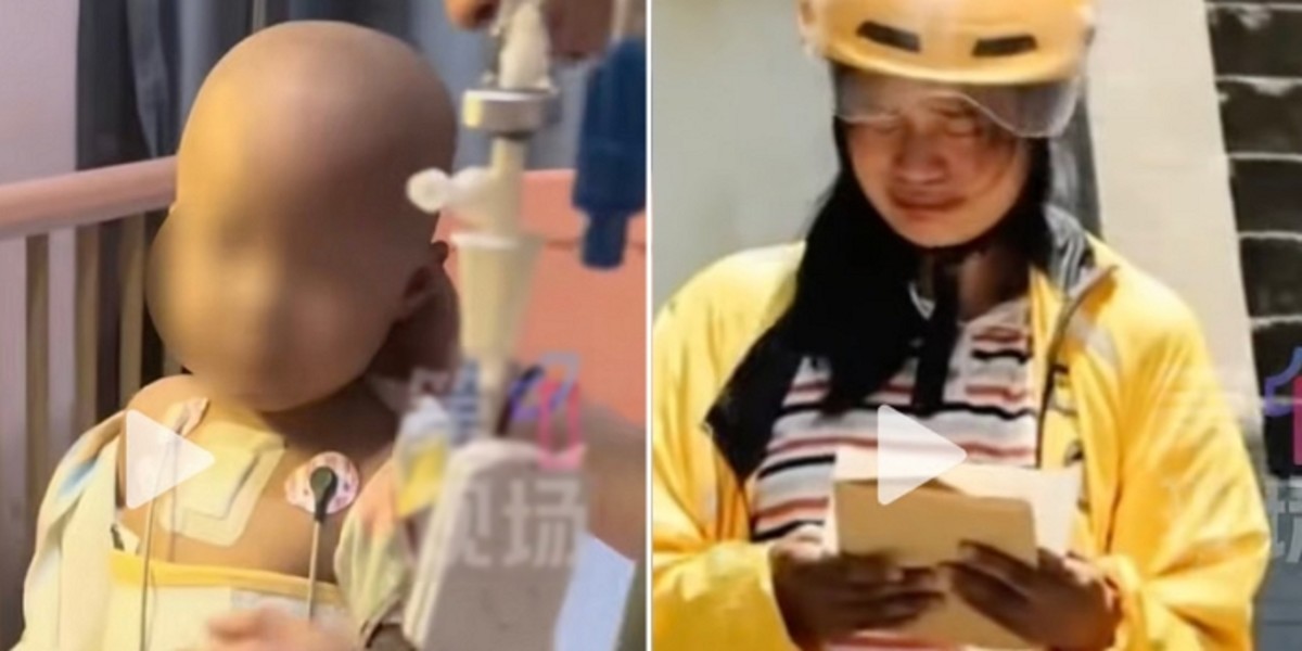 주씨 성을 가진 이 여성은 무더운 여름 전기 자전거로 음식을 배달하며 자전거에 부착된 배달 상자 안에 딸 누오시를 태우고 다녔다. 아이는 한 손에 정맥 주사 바늘이 꽂혀 있고 가슴에는 항암 치료용 포트가 달려 있는 상태였다.