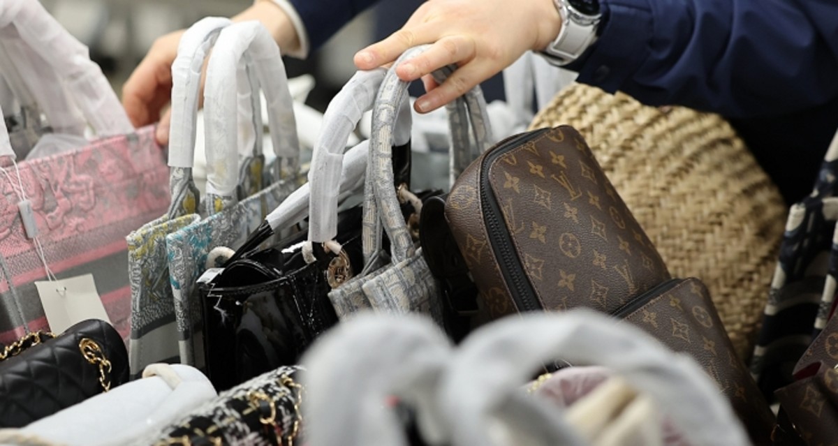 서울 중구 서울시청 남산 별관에서 서울시 민생사법경찰국 직원이 위조 상품을 판매한 일당 2명으로부터 압수한 가방 등 물품을 정리하고 있다. 이들은 명동 일대에서 벽으로 위장된 계단으로 이어진 30여평 규모의 비밀 매장을 만들고 외국인을 상대로 위조 상품을 판매한 혐의를 받고 있다. 2025.2.20/뉴스1