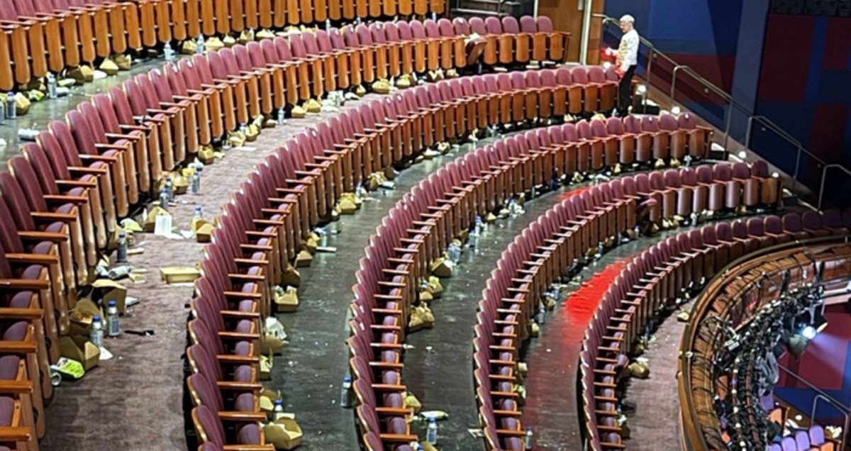공개된 사진에는 시상식 참석자들에게 제공된 간식 상자와 빈 병, 과자 비닐봉지 등 각종 쓰레기가 좌석과 극장 바닥에 흩어져 있는 모습이 담겼다. 주최 측은 이날 참석자들에게 다크 초콜릿과 과자, 물병 등을 간식으로 제공했는데, 그 잔해들이 곳곳에 방치돼 있었다.